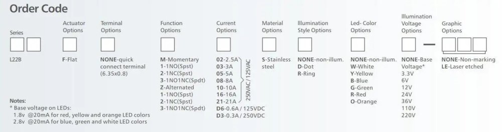 L22B LED Tlačítkový spínač 12V, 20A, 22mm, IP65