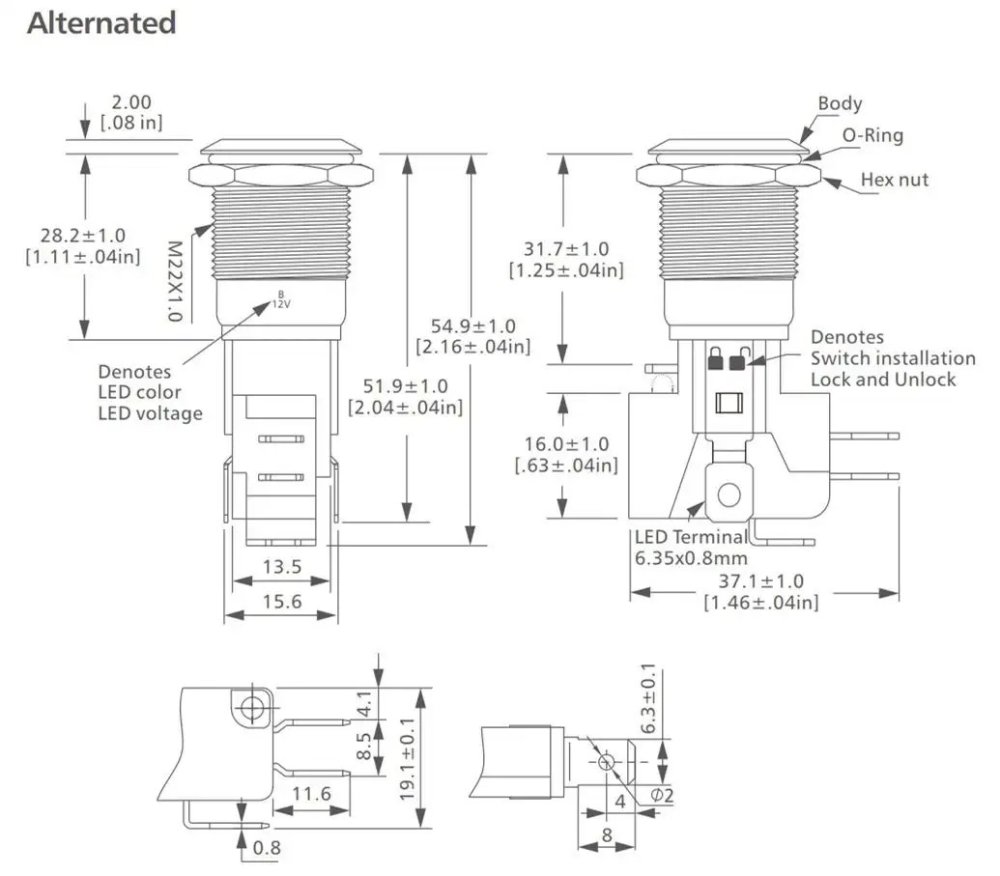 1x LED vodotěsný přepínač 22mm